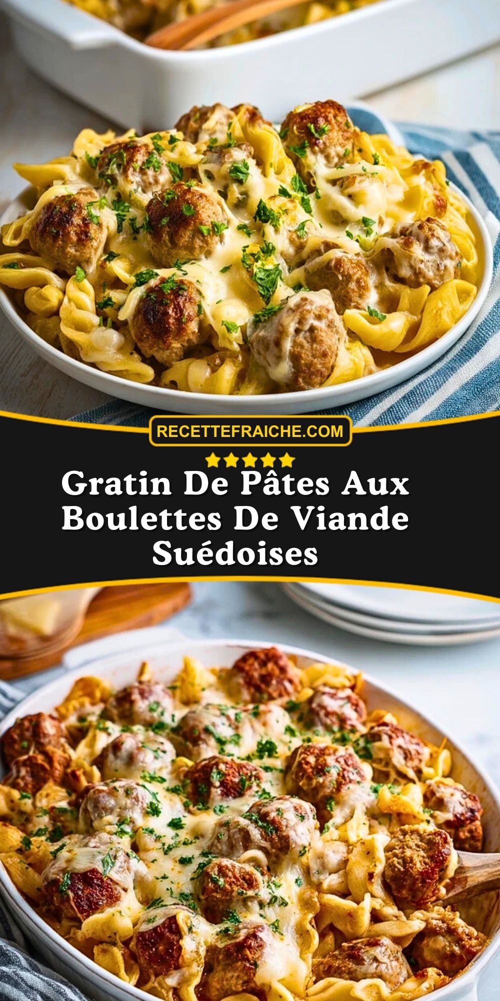 Keywords: gratin de pâtes, boulettes suédoises, gratin familial, plat réconfortant, pâte au four
