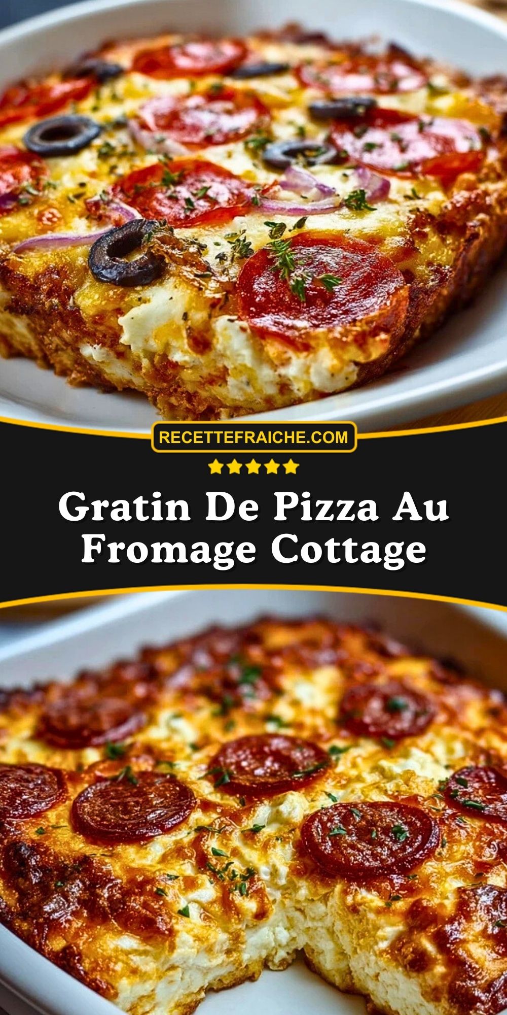 Keywords: gratin pizza, fromage cottage, recette faible en glucides, pizza sans pâte