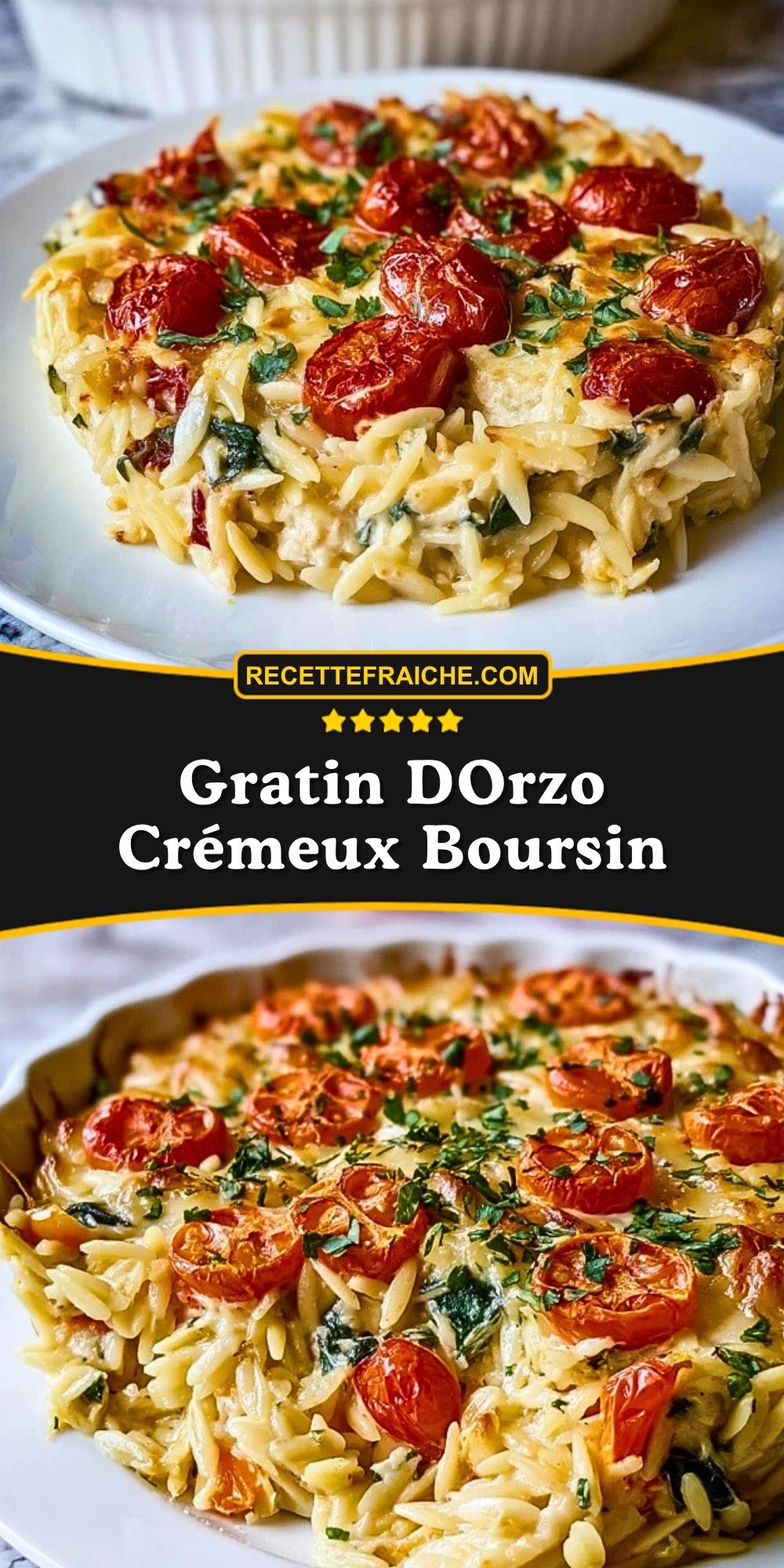 Keywords: gratin d orzo, orzo crémeux, gratin boursin, recette facile au four, plat familial crémeux