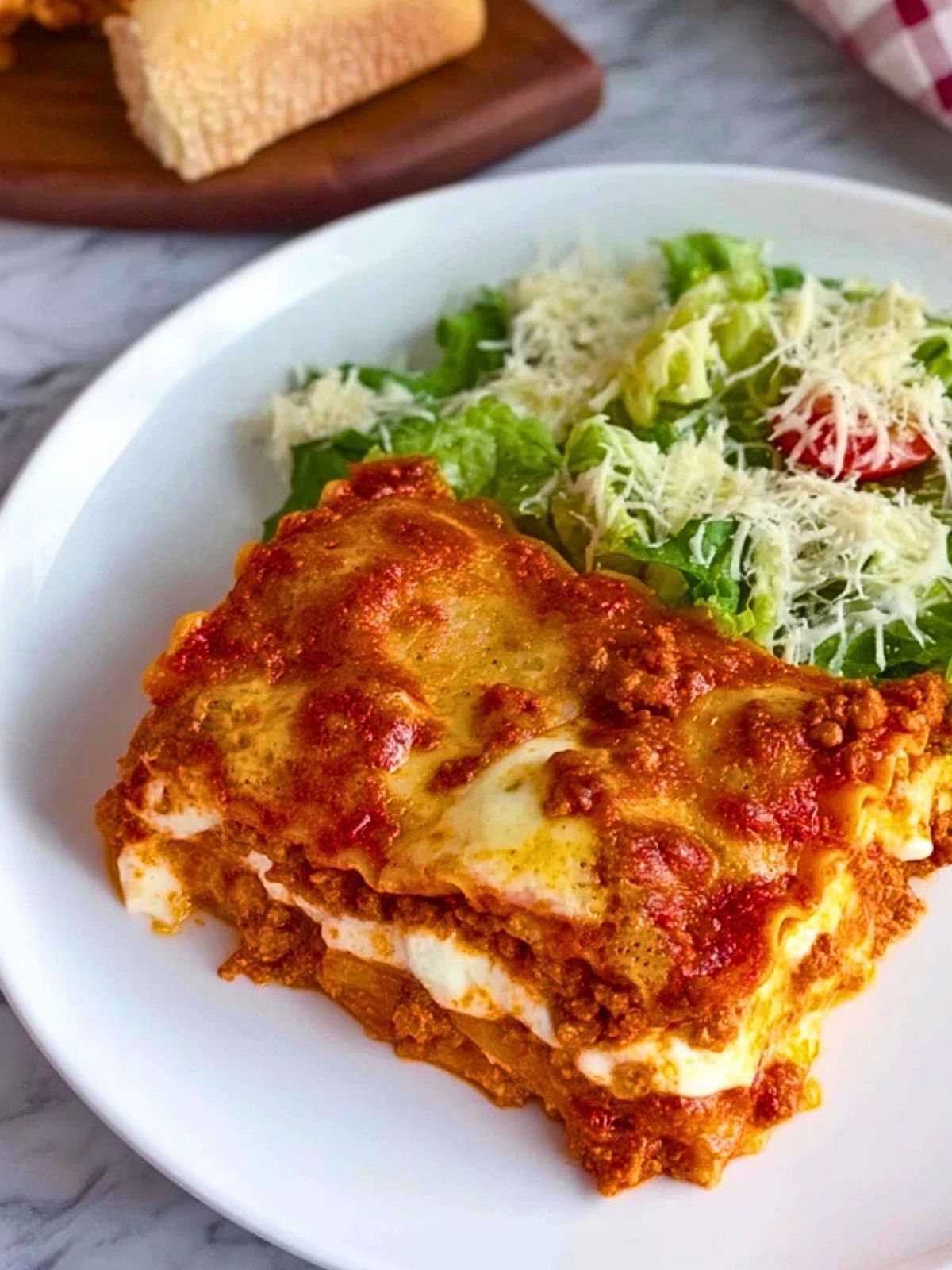 Lasagne rapide et savoureuse sans précuisson, parfaite pour un dîner en semaine. Une recette paresseuse mais délicieuse à base de viande, sauce tomate et fromage fondu.