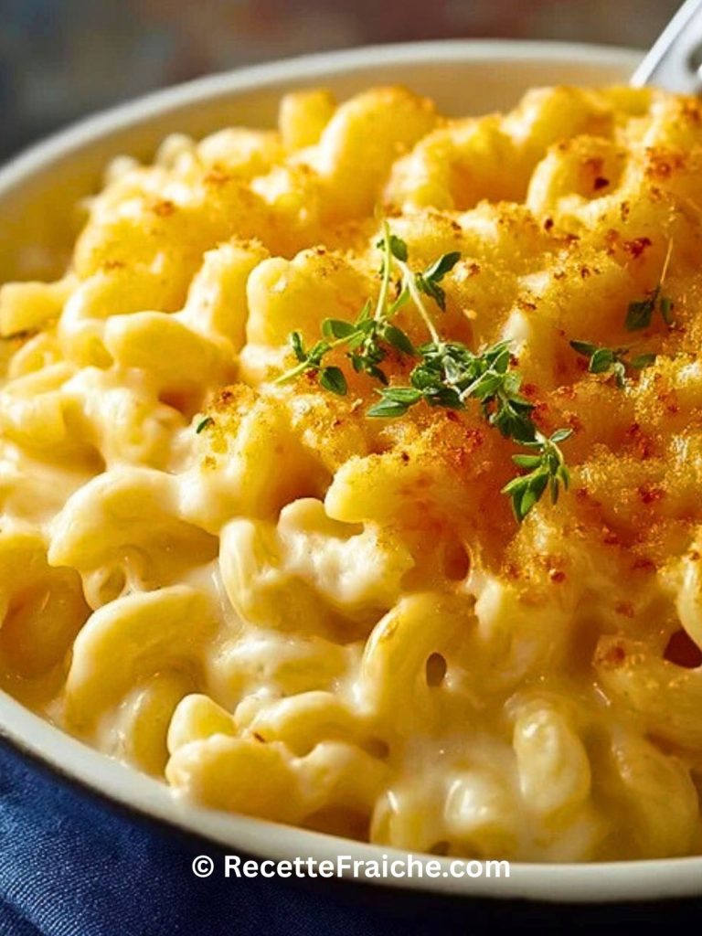 Keywords: macaroni au fromage, cheddar blanc, gratin, plat familial, comfort food