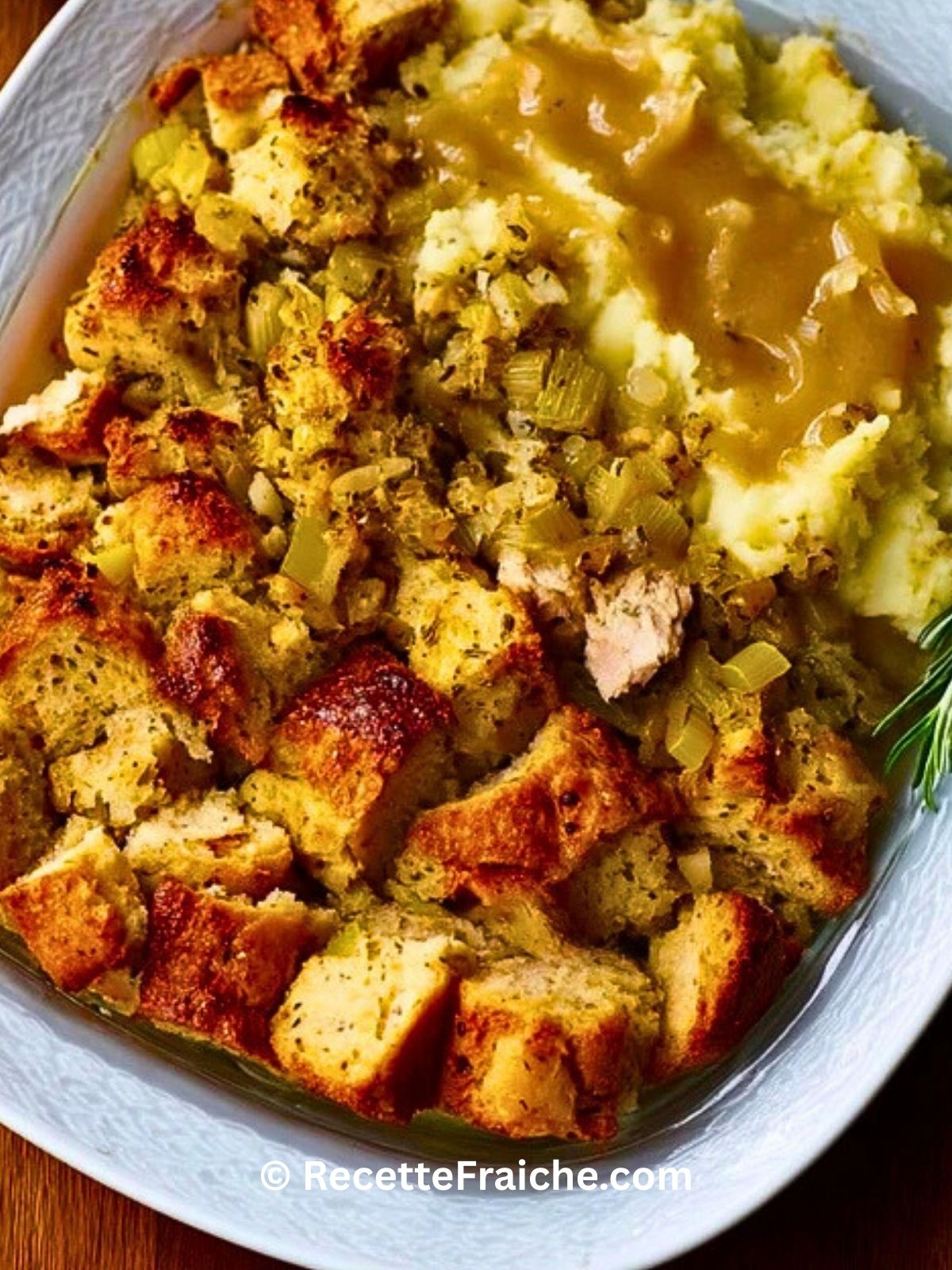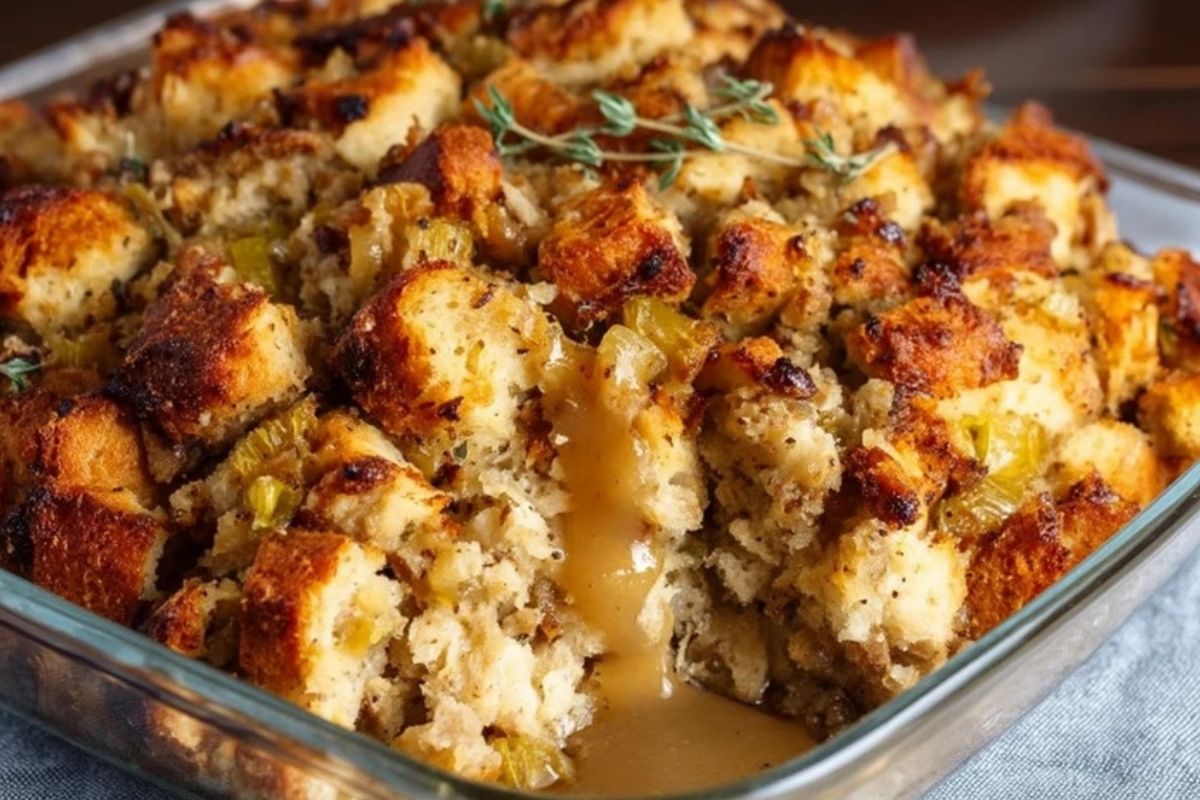 La meilleure farce de Thanksgiving : croustillante sur le dessus, moelleuse à l’intérieur, riche en herbes, céleri et oignons. Parfaite en accompagnement de la dinde ou en plat végétarien.