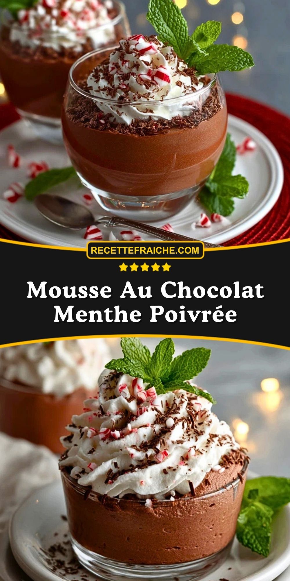 Keywords: mousse au chocolat menthe poivrée, dessert chocolat menthe, dessert festif, mousse légère, recette facile