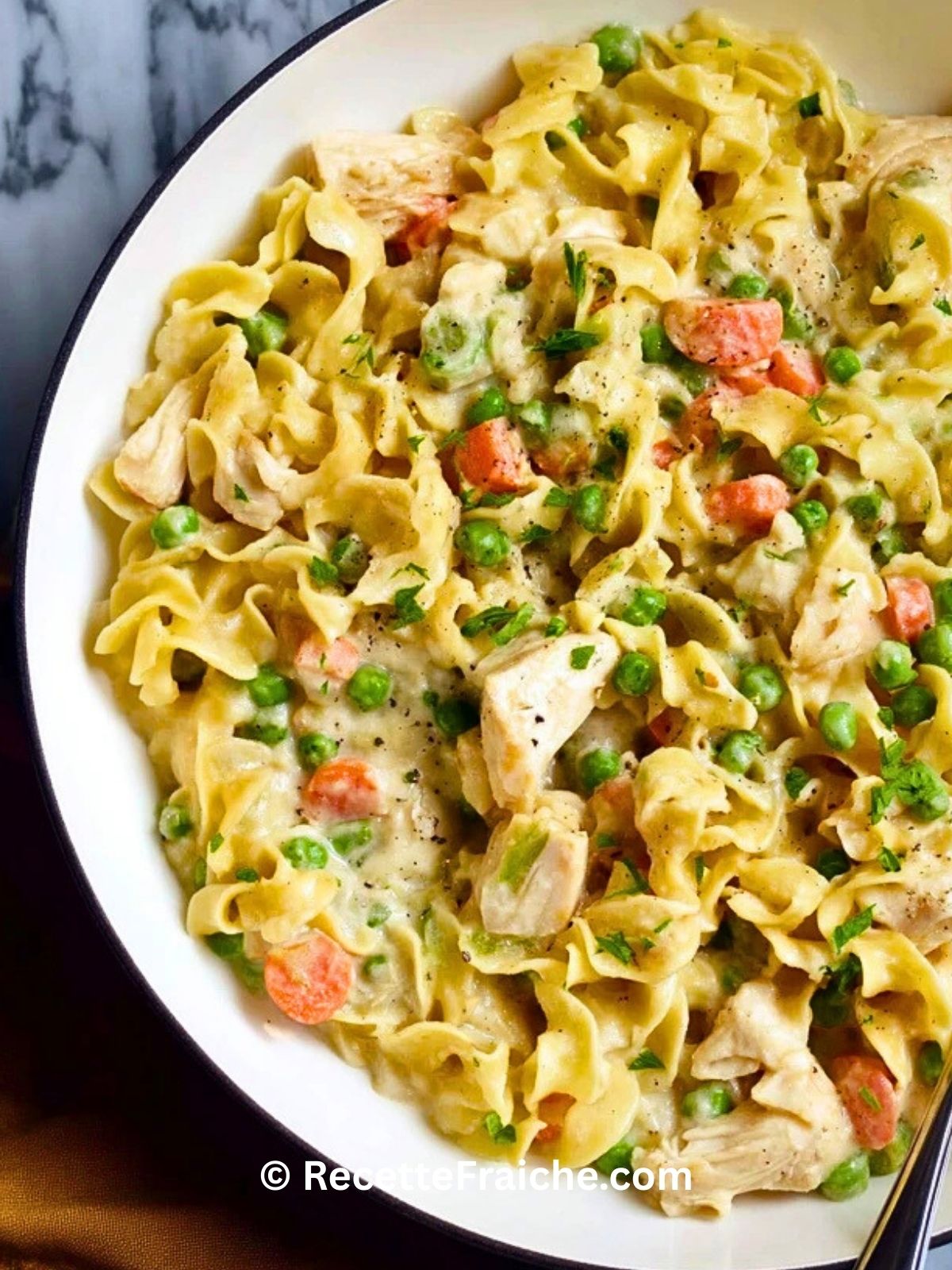Keywords: nouilles poulet crème, recette rapide, repas familial