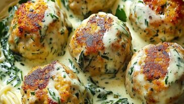 Boulettes de poulet au four à la ricotta avec sauce Alfredo aux épinards