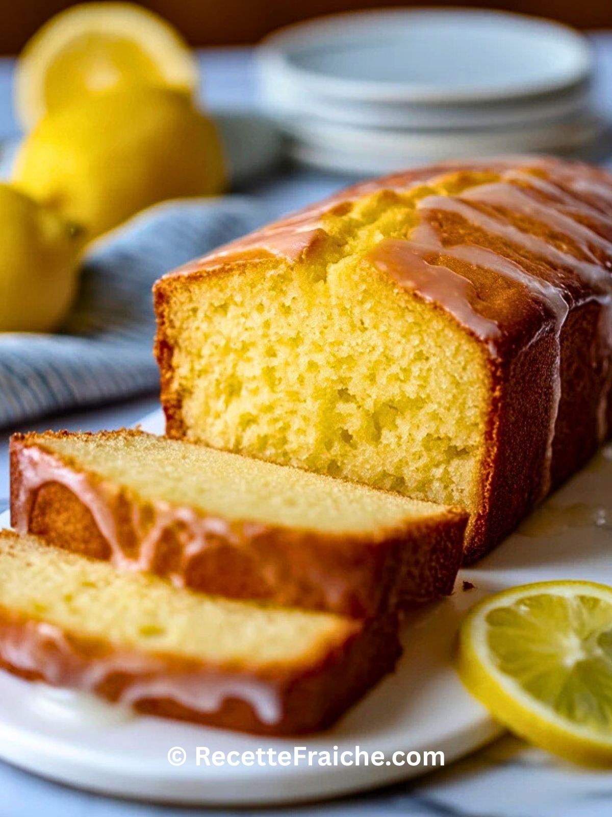 Quand je prépare un pain au citron, j’ai toujours l’impression d’apporter un rayon de soleil dans la cuisine. L’odeur du citron qui parfume la pâte, la croûte légèrement dorée, et ce glaçage brillant qui coule sur les côtés… C’est le genre de gâteau qu’on a envie de trancher encore tiède, juste pour en voler une première part.