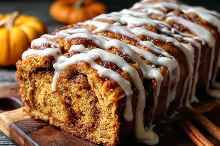 Je dois vous dire, ce pain au potiron avec glaçage au fromage à la crème est sans doute l’un de mes préférés pour l’automne. Dès la première bouchée, on est enveloppé par les arômes chauds de cannelle, de muscade et de courge. Il est incroyablement moelleux, parfumé, et le glaçage crémeux ajoute une touche sucrée qui le rend tout simplement irrésistible.