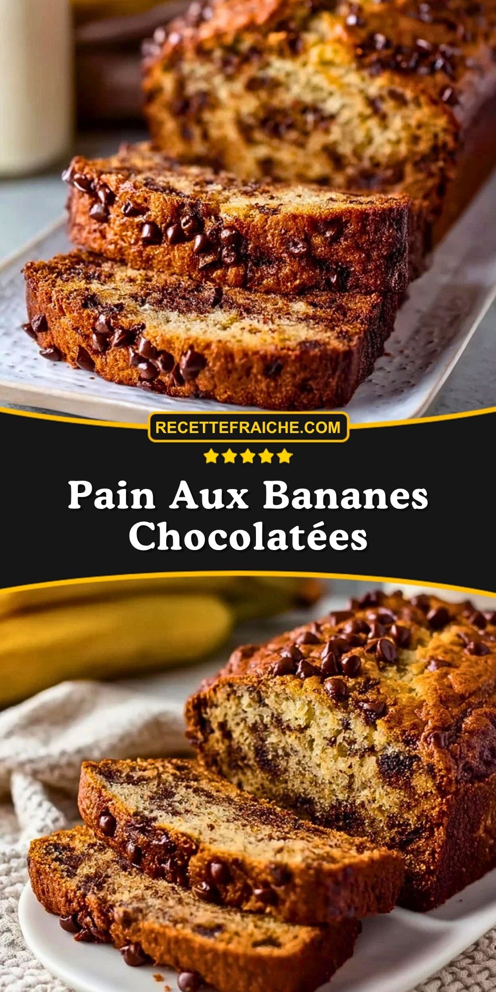 Keywords: pain aux bananes chocolatées, banana bread chocolat, gâteau à la banane, dessert facile, goûter maison