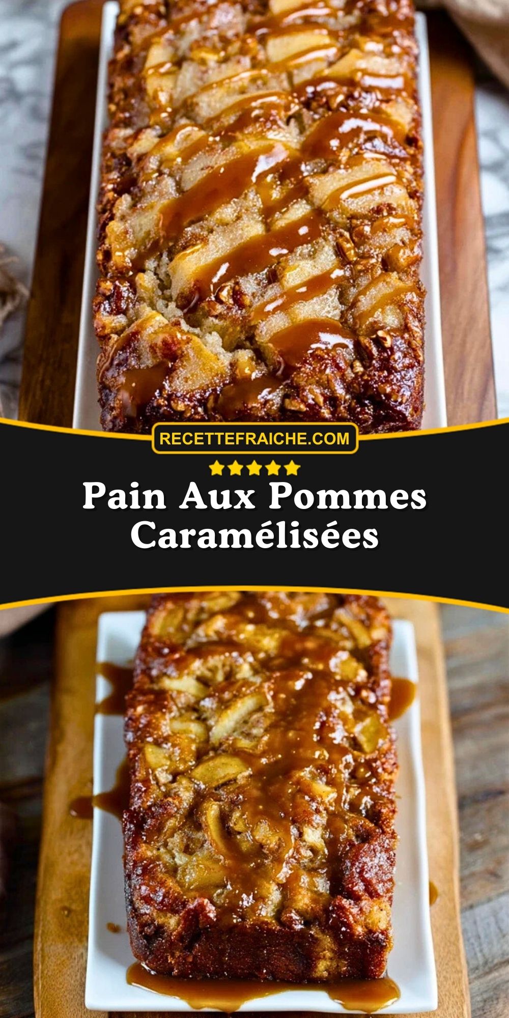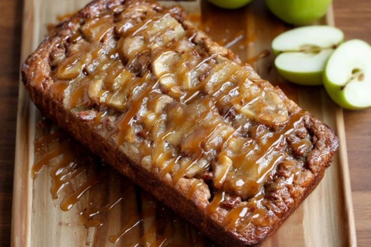 Pain moelleux aux pommes caramélisées, parfait pour le petit-déjeuner ou le goûter. Une douceur réconfortante parfumée à la cannelle.