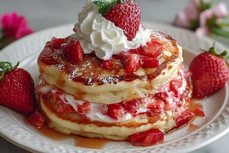 J’adore commencer mes journées avec un petit-déjeuner qui soit à la fois gourmand et léger, et ces Pancakes au Fromage Blanc et Fraises remplissent parfaitement cette mission. Le fromage blanc apporte une texture moelleuse et aérienne aux pancakes, tandis que les fraises ajoutent une note fruitée et rafraîchissante à chaque bouchée.
