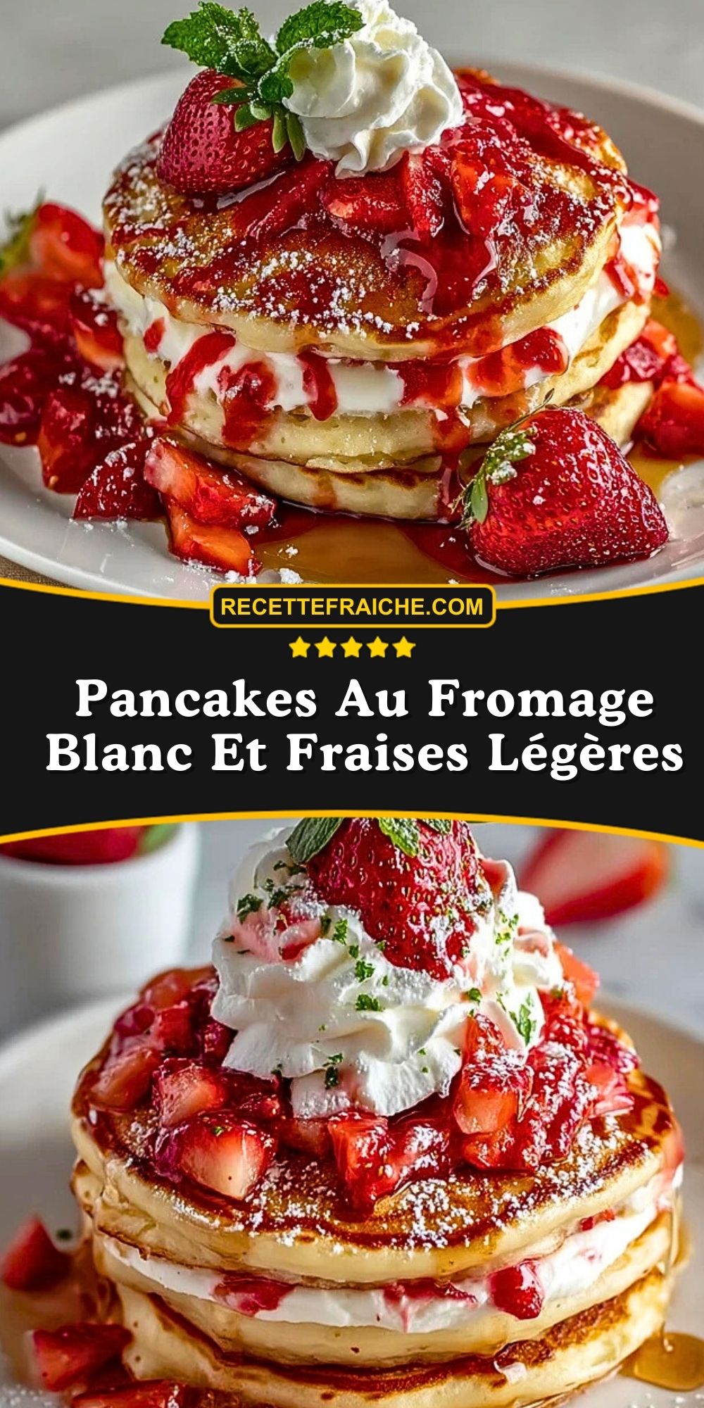 Keywords: pancakes fromage blanc, petit déjeuner léger, pancakes fraises