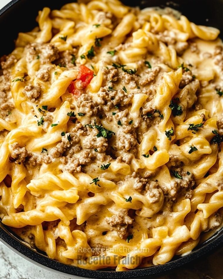 Un plat réconfortant et crémeux, idéal pour un dîner rapide en famille. Ces pâtes à la viande hachée sont nappées d’une sauce onctueuse et savoureuse, relevée d’herbes et d’épices. Facile à préparer en moins de 30 minutes, cette recette est parfaite pour les amateurs de cuisine gourmande et simple.