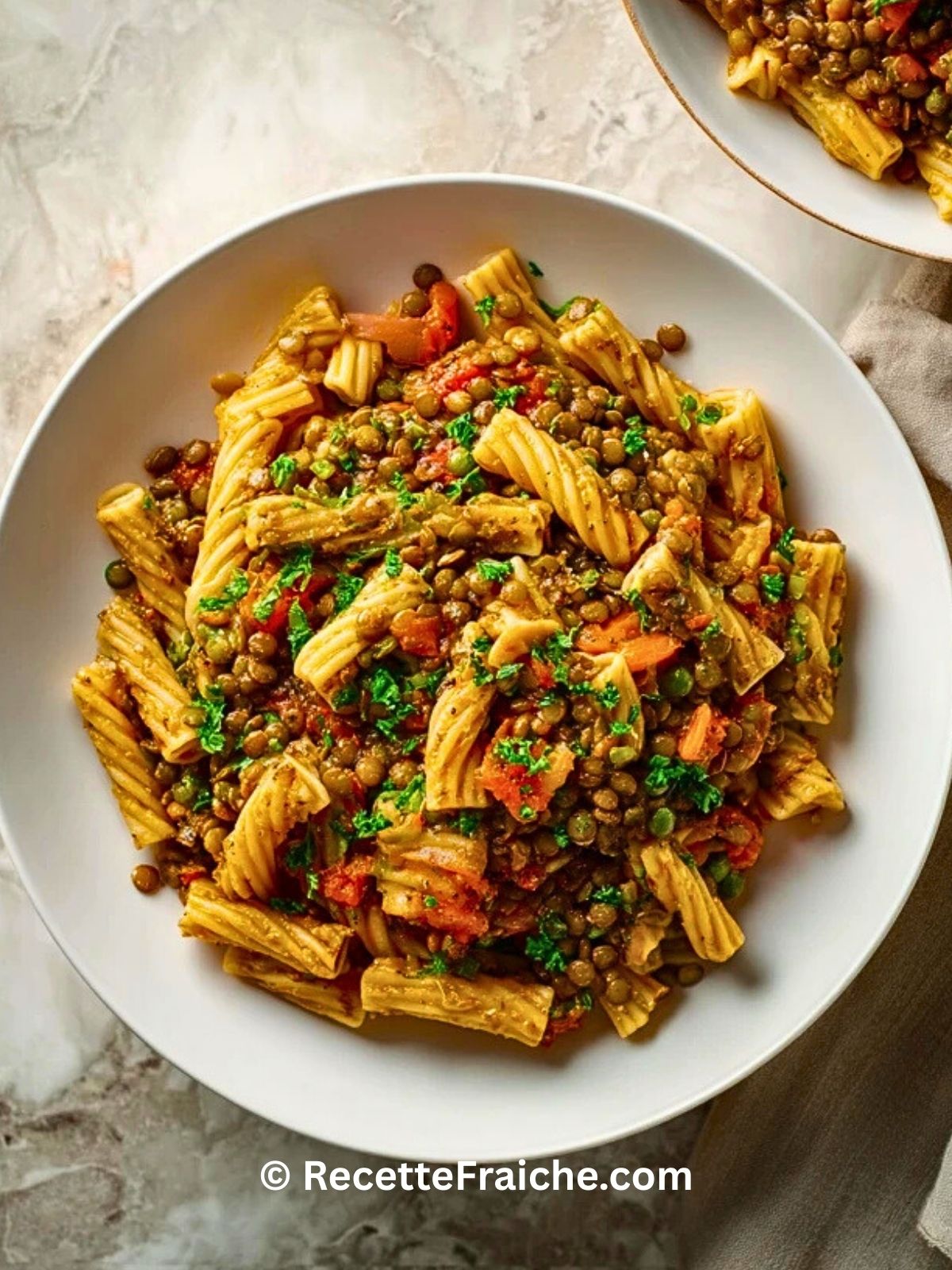 Keywords: pâtes aux lentilles, recette végétarienne, plat équilibré, pâtes nutritives, dîner sain