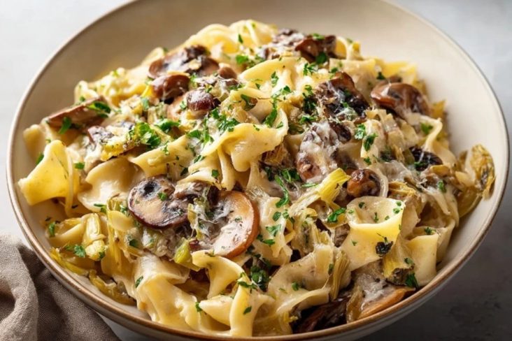 Quand j’ai envie d’un plat à la fois réconfortant, savoureux et simple à préparer, je me tourne souvent vers ces pâtes aux poireaux caramélisés et champignons avec gruyère. Ce plat coche toutes les cases du dîner parfait : il est généreux, fondant, avec une pointe de croquant grâce au gruyère gratiné, et il met en valeur la douceur des poireaux et la richesse des champignons.