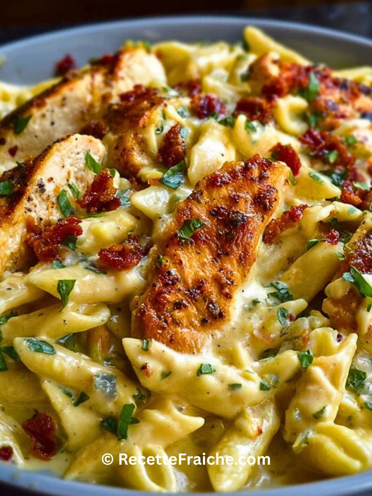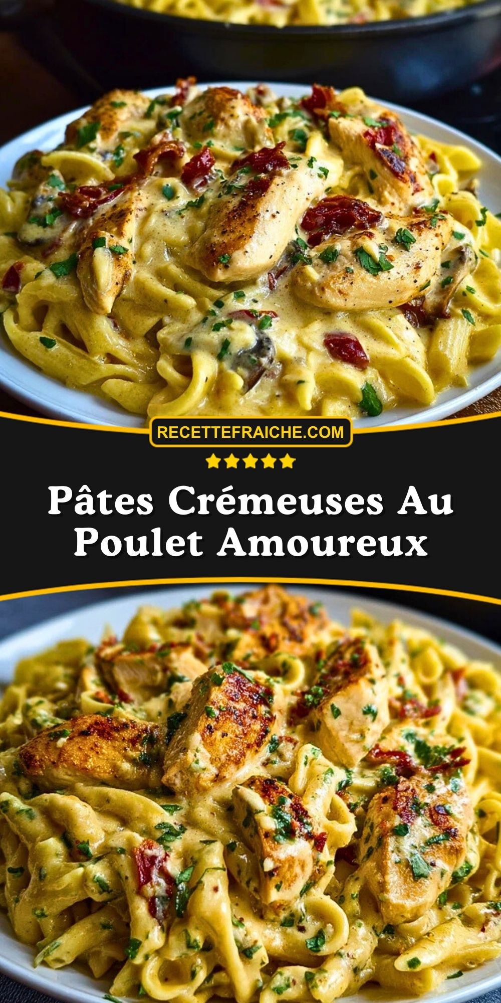 C’est la recette vers laquelle je me tourne dès que j’ai envie de réconfort et de douceur après une longue journée. Les pâtes crémeuses au poulet amoureux, c’est un plat qui fait toujours sensation à la maison. J’aime la générosité de la sauce, la tendresse du poulet, et ce parfum d’herbes fraîches qui évoque les dîners où tout le monde se ressert.