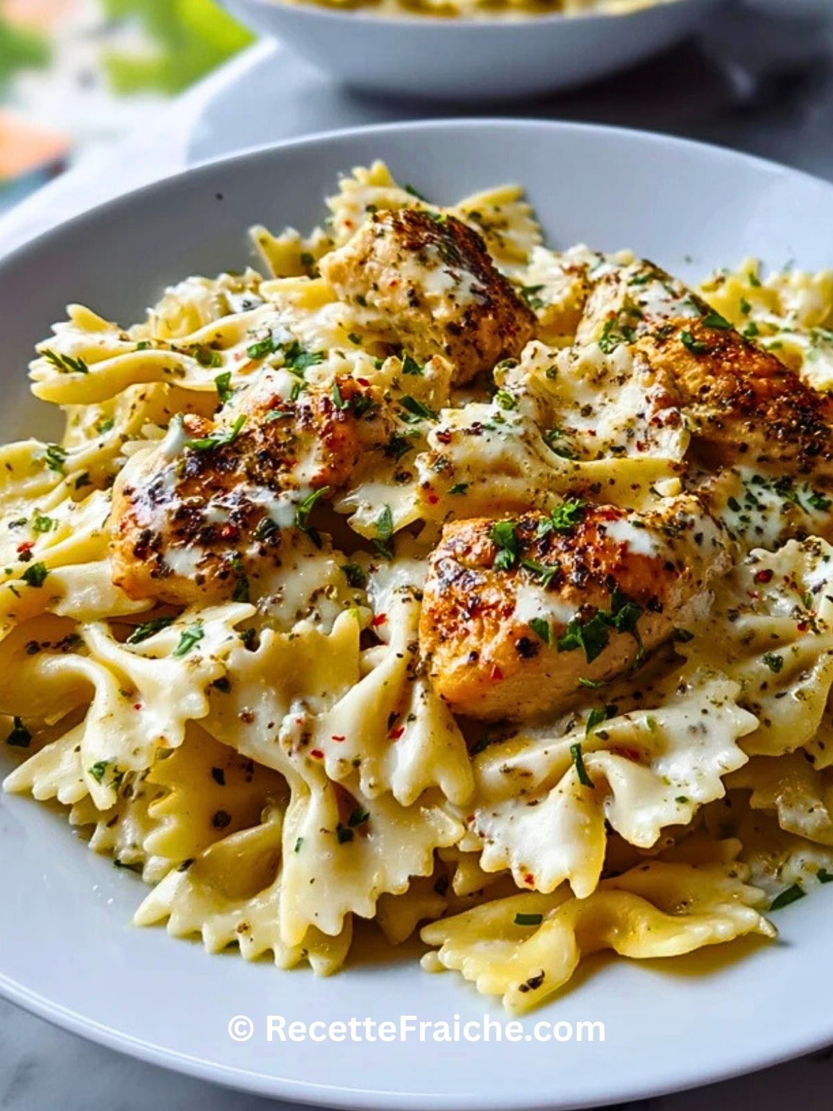 Pâtes Papillon au Poulet à lAil et Sauce Crème au Mozzarella