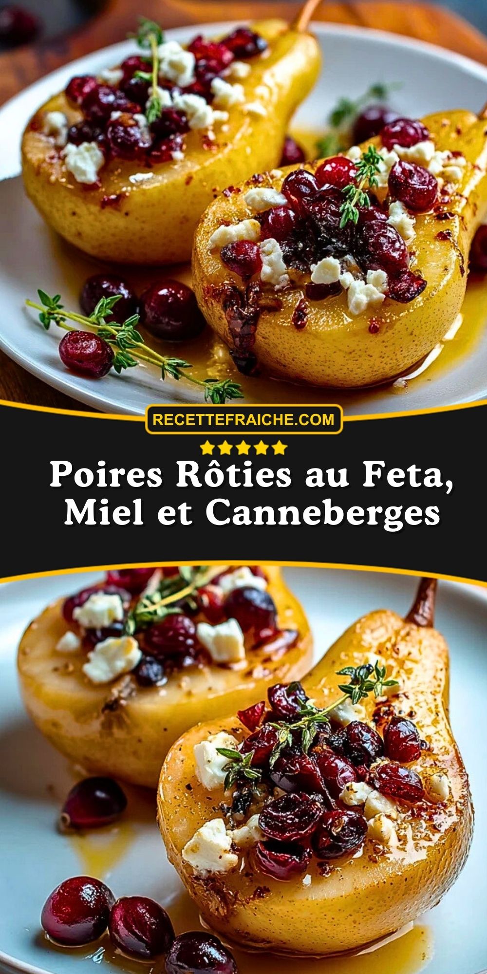 Des poires rôties au four, garnies de feta, canneberges, thym et miel. Un dessert sucré-salé fondant, original et prêt en 35 minutes, idéal pour finir un repas automnal ou accompagner un plateau de fromages.