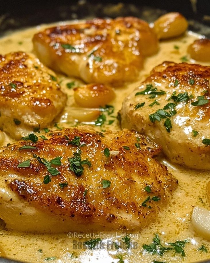 Des poitrines de poulet tendres et juteuses, mijotées dans une sauce crémeuse à l’ail délicieusement parfumée. Une recette simple et rapide, parfaite pour un repas réconfortant en semaine ou un dîner élégant.