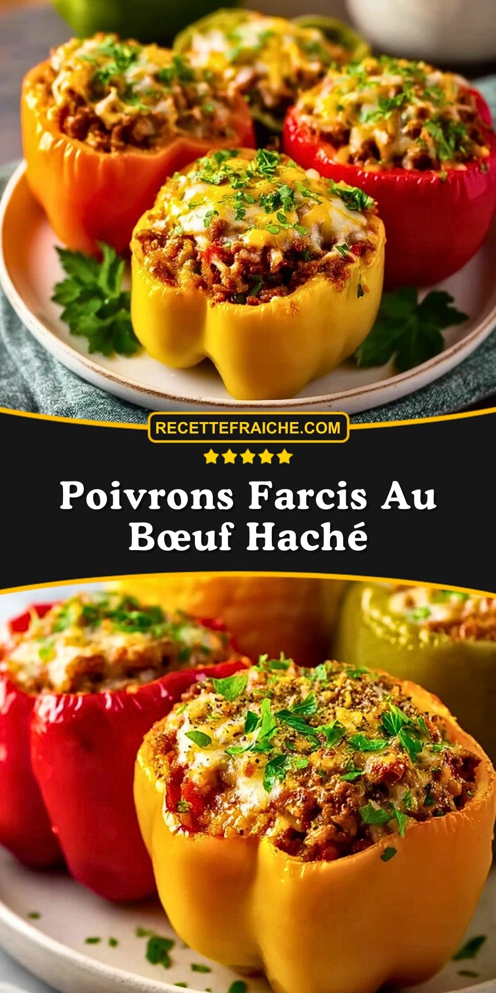 Ces poivrons farcis au bœuf haché ont tout pour devenir un classique de votre cuisine : simples, généreux, colorés et toujours appréciés à table. Si la recette vous a plu, pensez à l’enregistrer sur Pinterest pour la retrouver facilement, et n’hésitez pas à la partager avec votre famille et vos amis : c’est typiquement le genre de plat qui se transmet et qui crée de beaux souvenirs autour de la table.