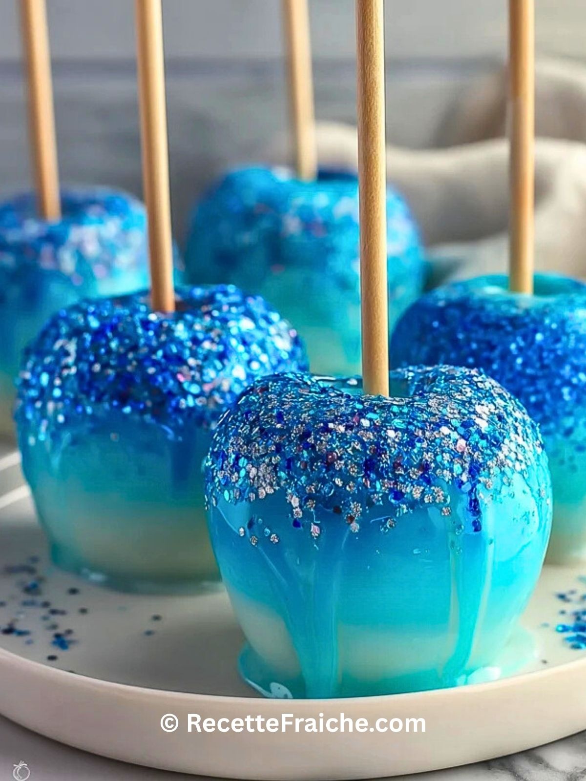 Keywords: pommes d amour, caramel bleu, dessert fête, confiserie maison