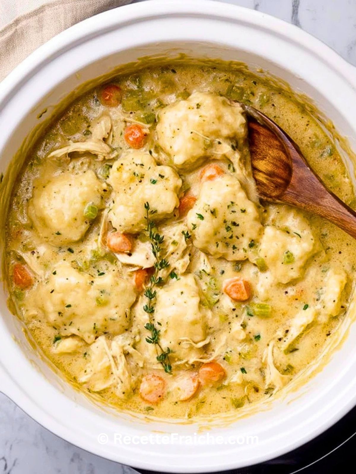 Utilisez un poulet déjà rôti ou poché pour aller plus vite et obtenir une texture encore plus tendre. Gardez aussi une sauce légèrement fluide avant d’ajouter les galettes, car elles absorbent une partie de l’humidité pendant la cuisson.