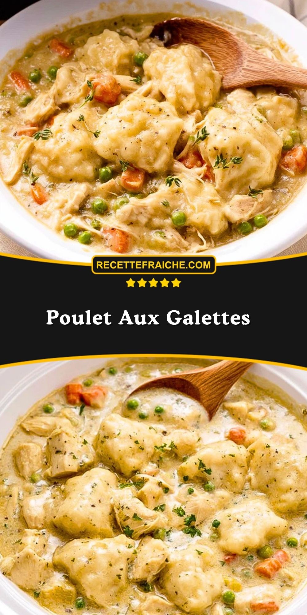 Keywords: poulet aux galettes, poulet mijoté, recette réconfortante, plat familial, galettes moelleuses, sauce crémeuse