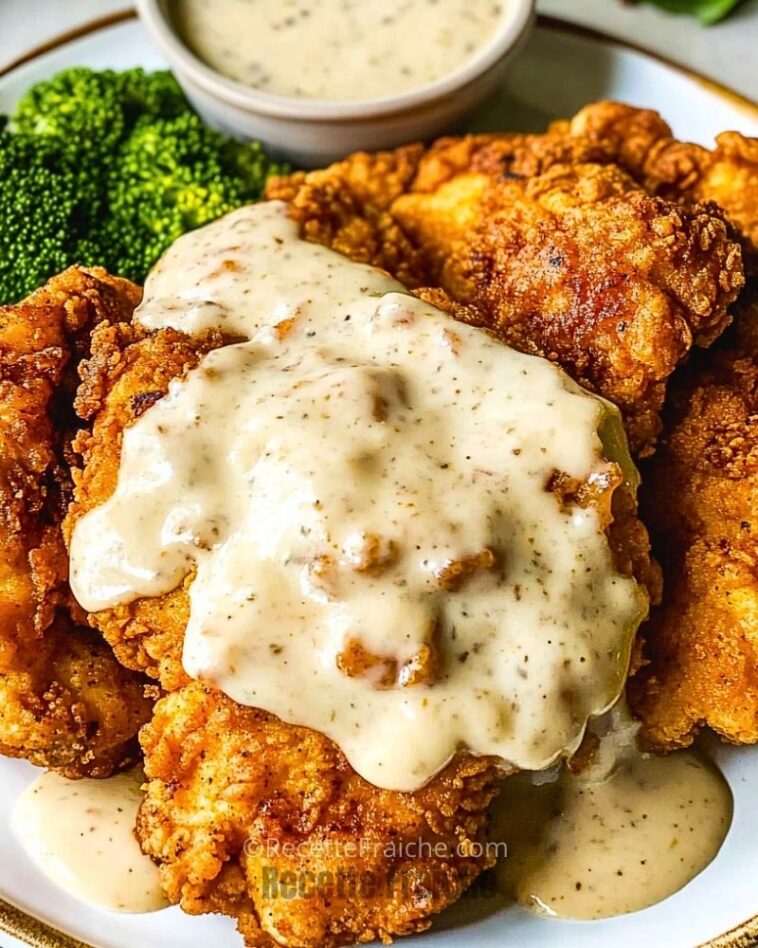 Un poulet frit à la façon du Sud, croustillant à l’extérieur et tendre à l’intérieur, mariné dans du babeurre et enrobé d’une panure assaisonnée. Idéal pour un repas convivial avec une sauce crémeuse et des accompagnements gourmands.