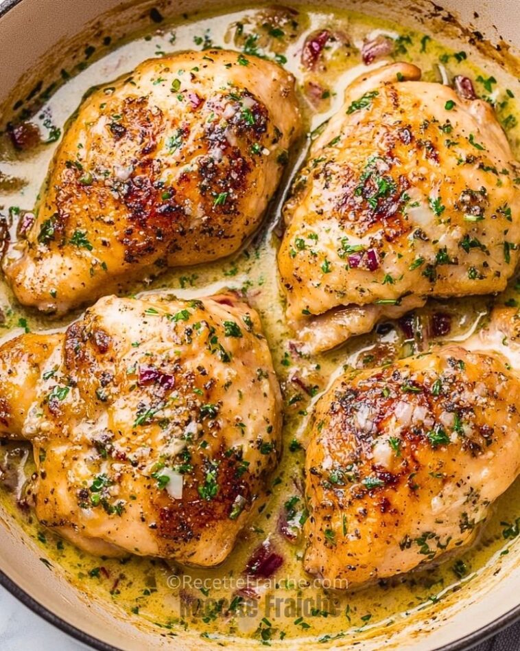Le Poulet Marry Me est une recette onctueuse et savoureuse, parfaite pour un repas romantique ou un dîner gourmand. Des cuisses de poulet dorées mijotent dans une sauce crémeuse à l’ail, au parmesan et aux tomates séchées. Facile à réaliser en une seule poêle, ce plat est un incontournable à servir avec des pâtes, du riz ou du pain croustillant.