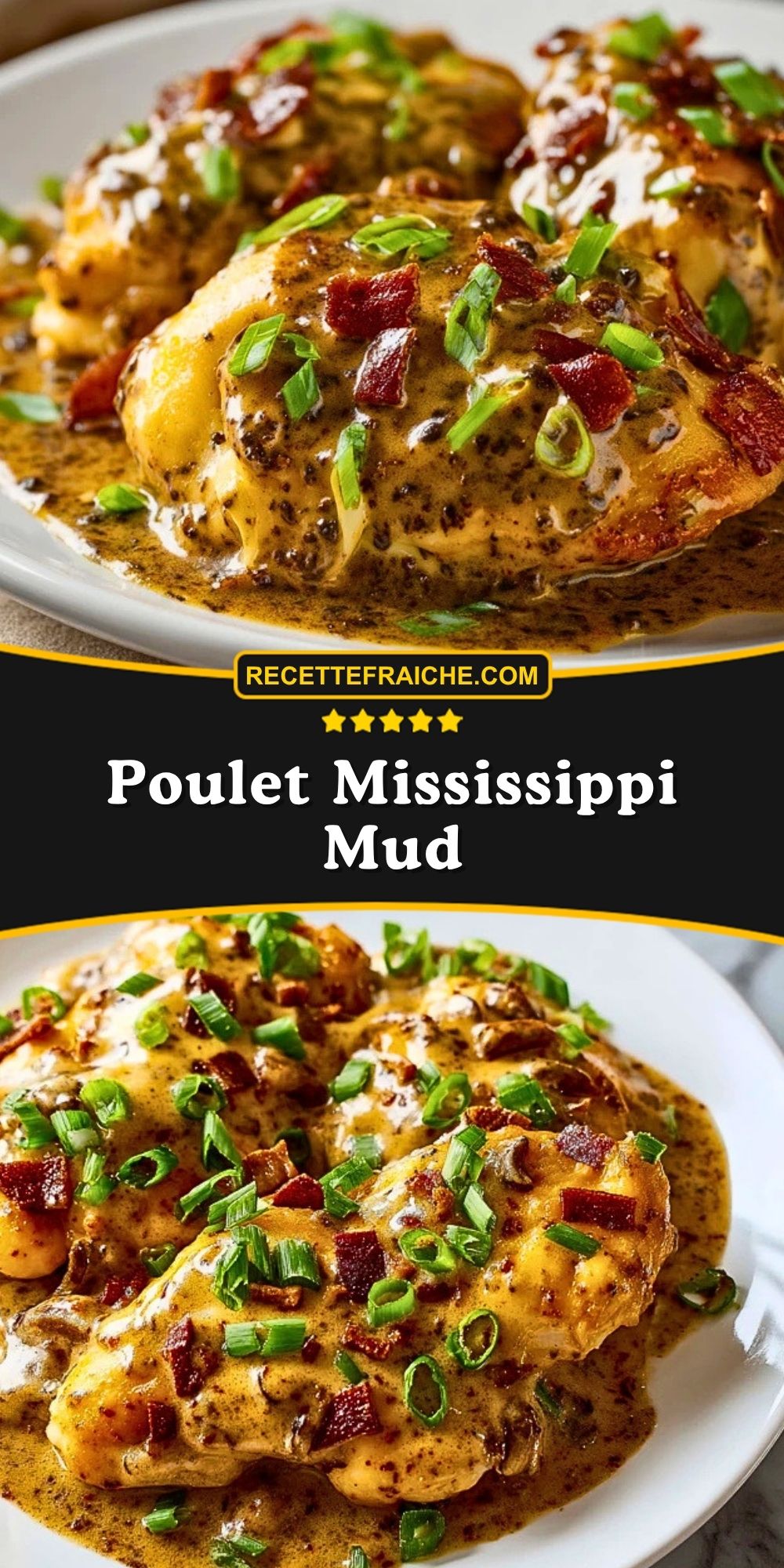 Keywords: Poulet Mississippi Mud, poulet crémeux, poulet au bacon, recette facile, dîner familial, plat réconfortant