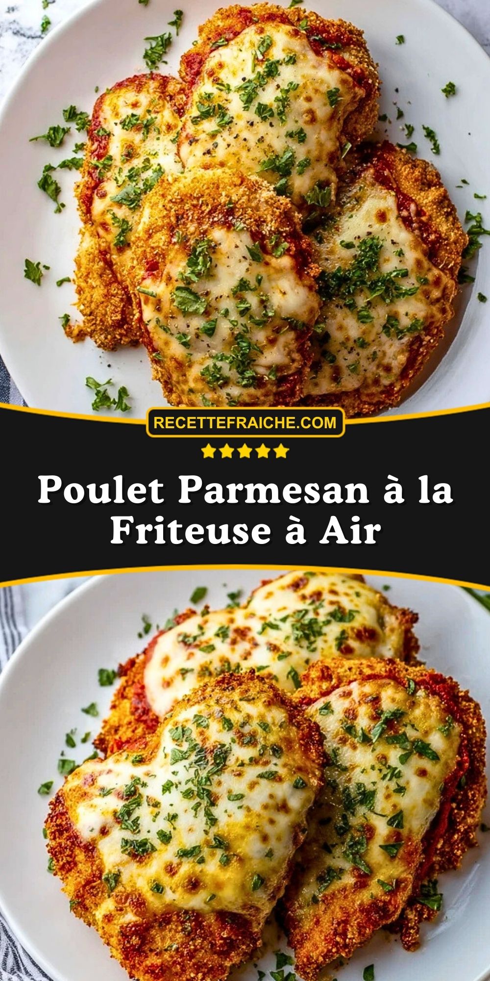 Keywords: poulet parmesan à la friteuse à air, poulet pané croustillant, recette facile au parmesan, poulet mozzarella sauce tomate