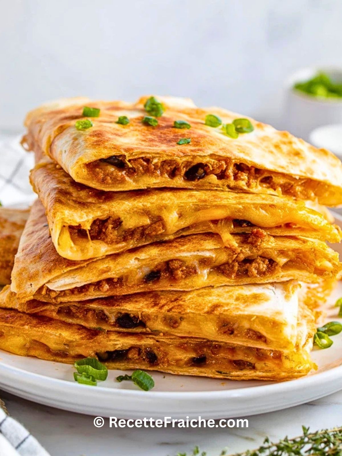 Je prépare souvent ces quesadillas au four quand j’ai envie d’un repas généreux, croustillant et ultra réconfortant sans passer trop de temps en cuisine. J’aime particulièrement cette version parce qu’elle combine le fondant du fromage, une garniture bien relevée et une cuisson au four qui donne une texture dorée sur toute la surface.