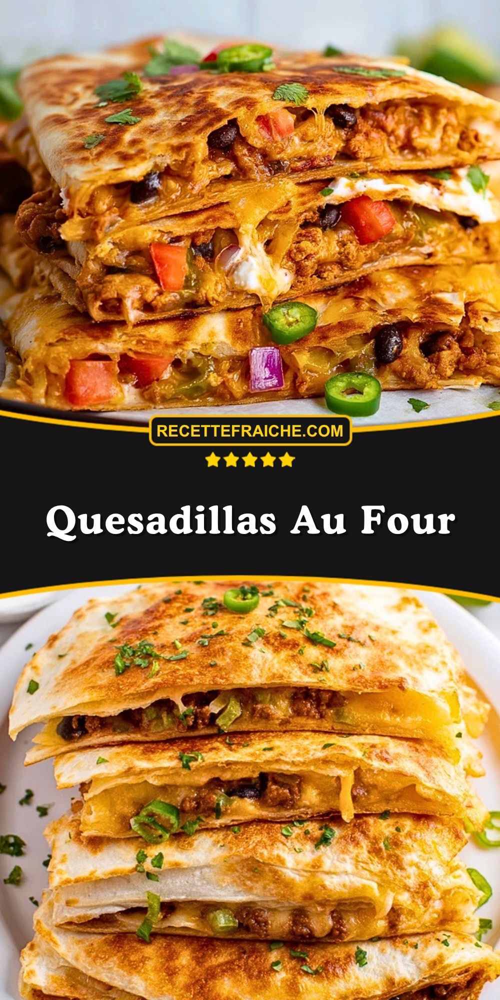 Keywords: quesadillas au four, quesadillas poulet fromage, recette tex-mex facile, tortillas gratinées, dîner rapide au four