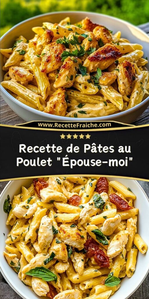 Si vous avez aimé ces pâtes au poulet « Épouse-moi », enregistrez cette recette sur Pinterest et partagez-la avec votre famille et vos amis ! C’est un plat qui séduit à coup sûr et qui pourrait bien devenir votre nouveau favori. Alors, qui sera le prochain à succomber à cette délicieuse recette ?