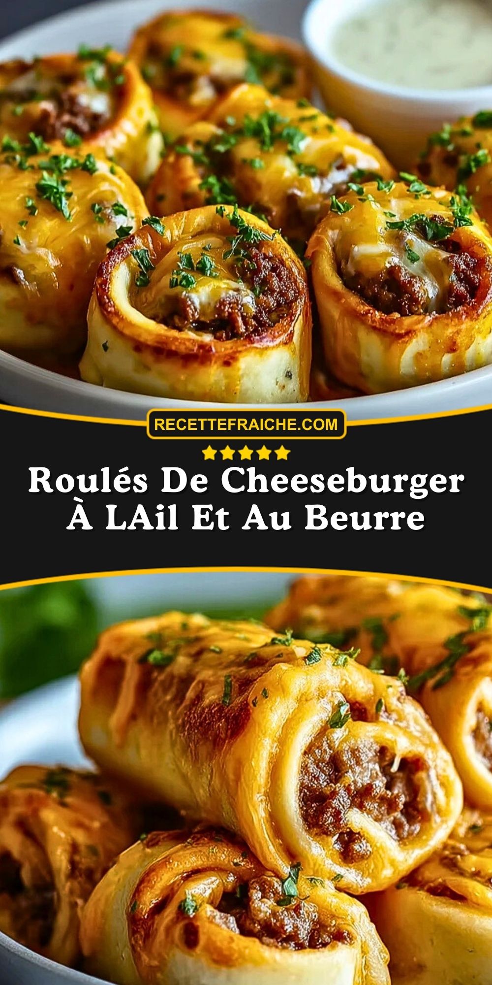 Keywords: roulés cheeseburger, recette facile, apéritif gourmand, bœuf fromage, beurre à l’ail