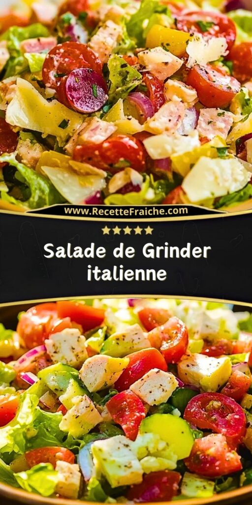 Cette salade de Grinder italienne est une option parfaite pour un repas rapide, frais et gourmand. Son mélange de saveurs et de textures la rend irrésistible, et elle peut être adaptée selon vos goûts et envies. Si vous avez aimé cette recette, pensez à l’enregistrer sur Pinterest et à la partager avec votre famille et vos amis !