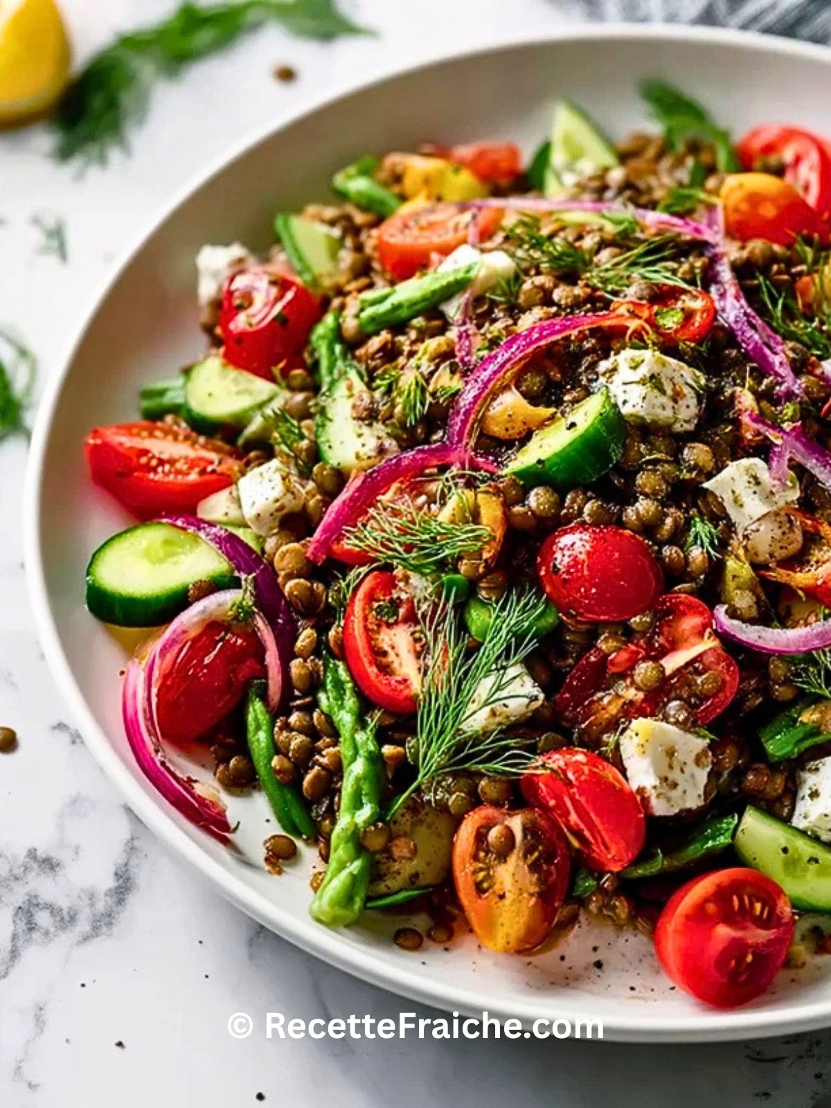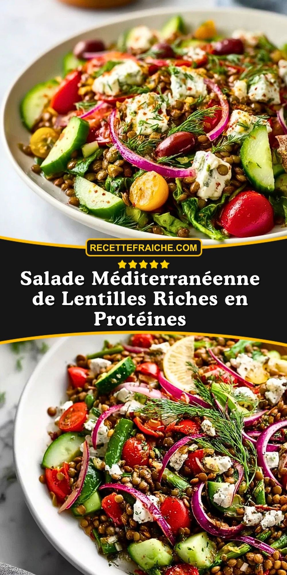 Keywords: salade méditerranéenne de lentilles, salade protéinée, salade lentilles feta, recette saine, salade fraîche