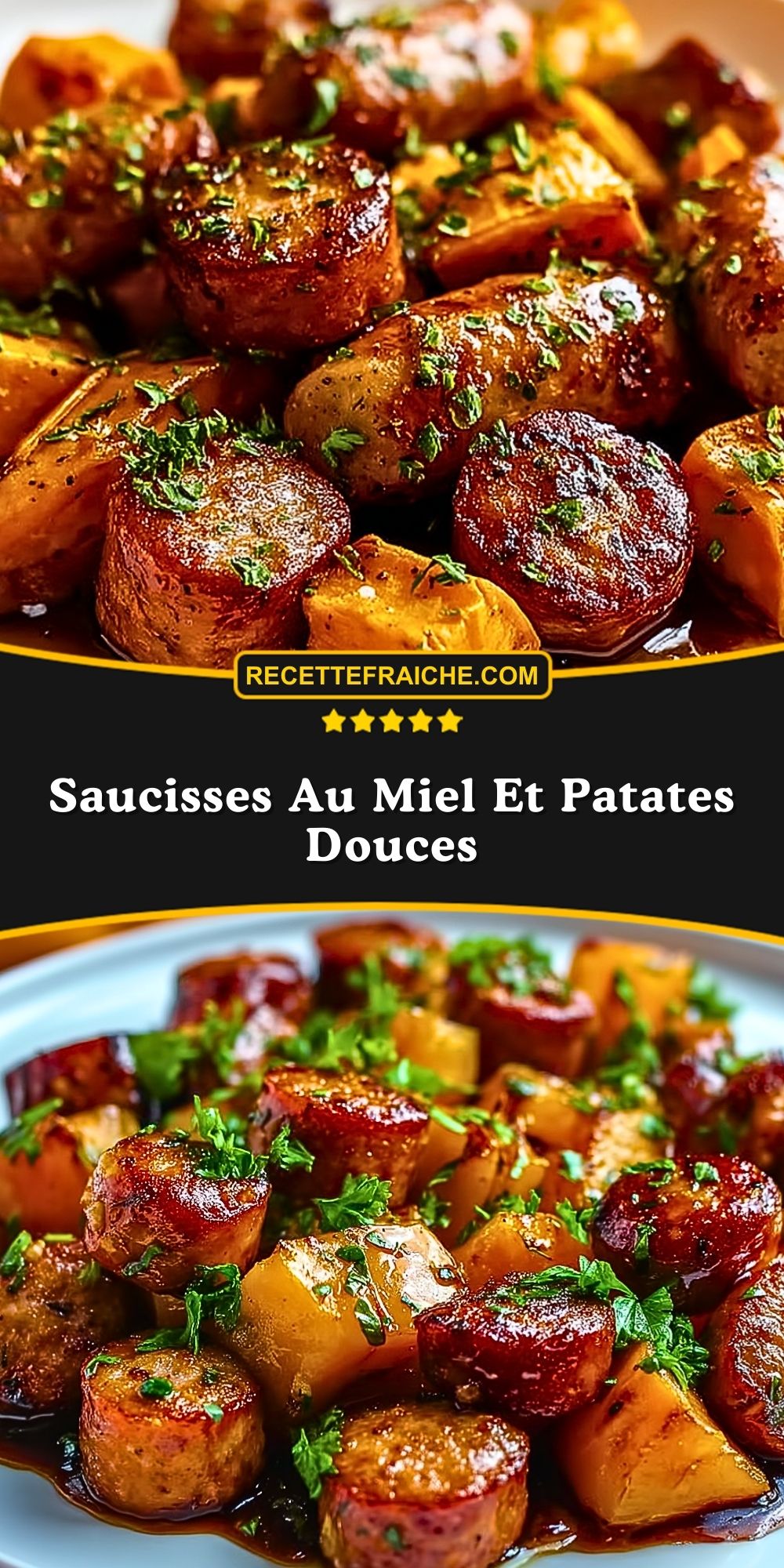 Cette recette, je la fais souvent quand je reçois des amis ou en famille, car elle plaît à coup sûr et se prête aux variantes selon les saisons ou le contenu du frigo. La douceur des patates douces, la générosité des saucisses et le miel qui caramélise le tout… c’est une vraie invitation à la gourmandise, et un plat convivial à partager !