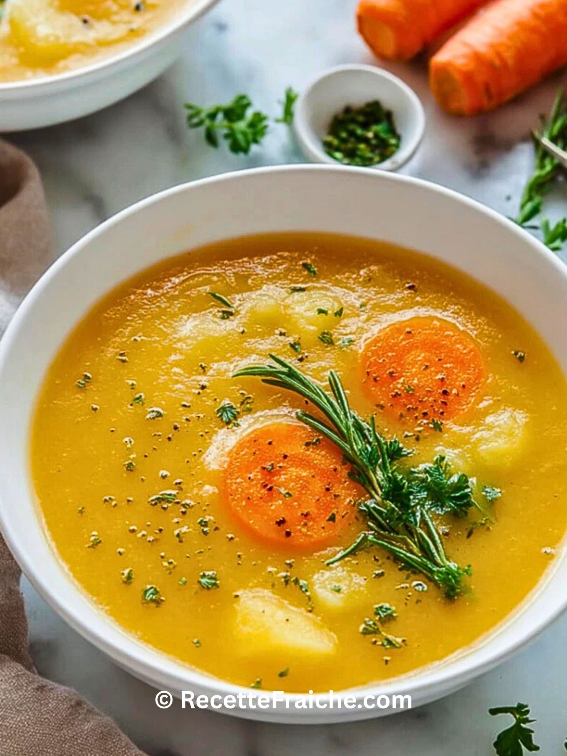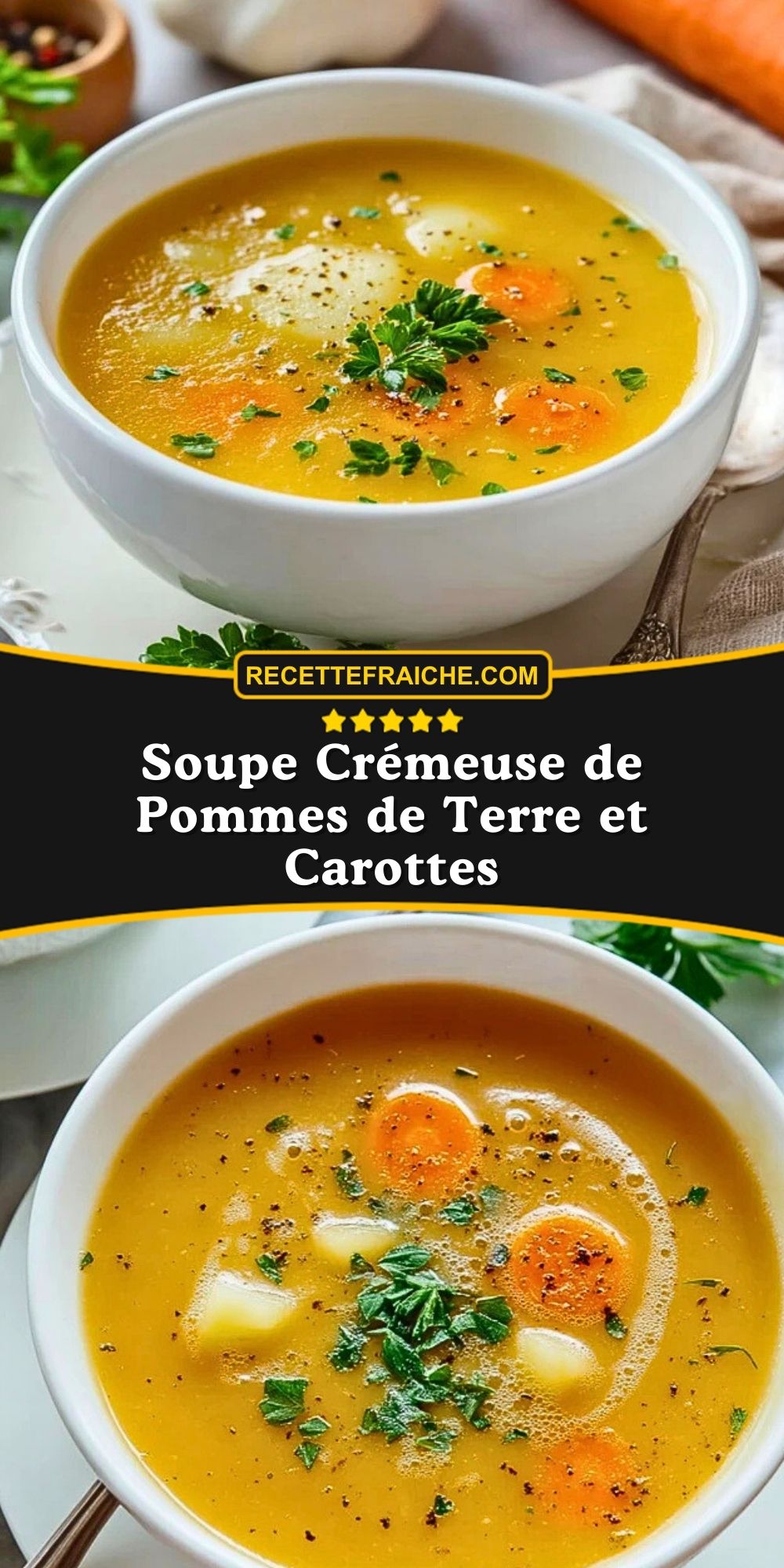 Keywords: soupe, pommes de terre, carottes, velouté, recette facile, hiver