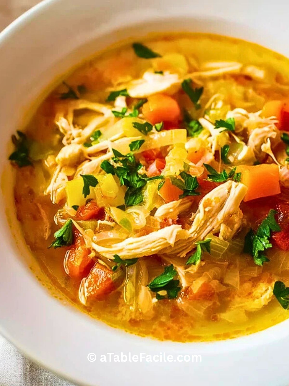 Ce qui me plaît le plus dans cette soupe, c’est la richesse de ses saveurs et la facilité avec laquelle elle se prépare. Avec du bon poulet, des légumes colorés et un bouillon parfumé, on obtient un plat réconfortant qui plaît à toute la famille. Servie bien chaude avec un peu de persil frais, elle devient vite la star de la table !