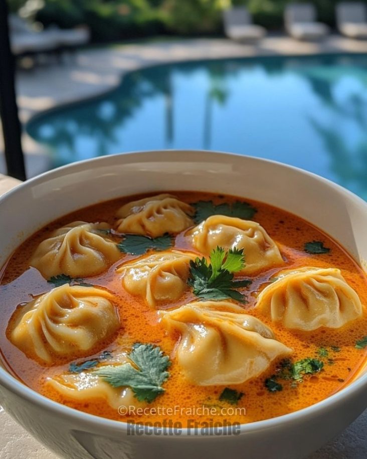 Soupe de raviolis au curry rouge thaïlandais facile