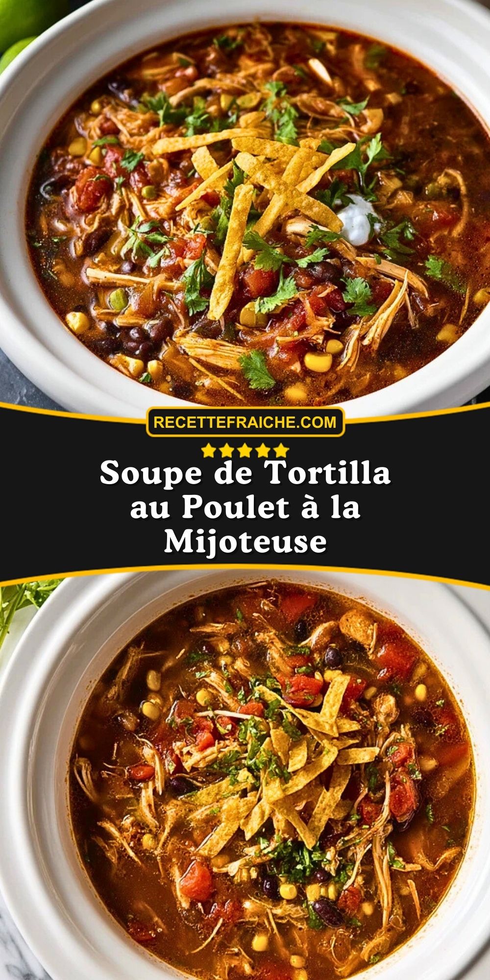 Keywords: soupe de tortilla au poulet, soupe mexicaine mijoteuse, soupe de poulet épicée, recette facile slow cooker