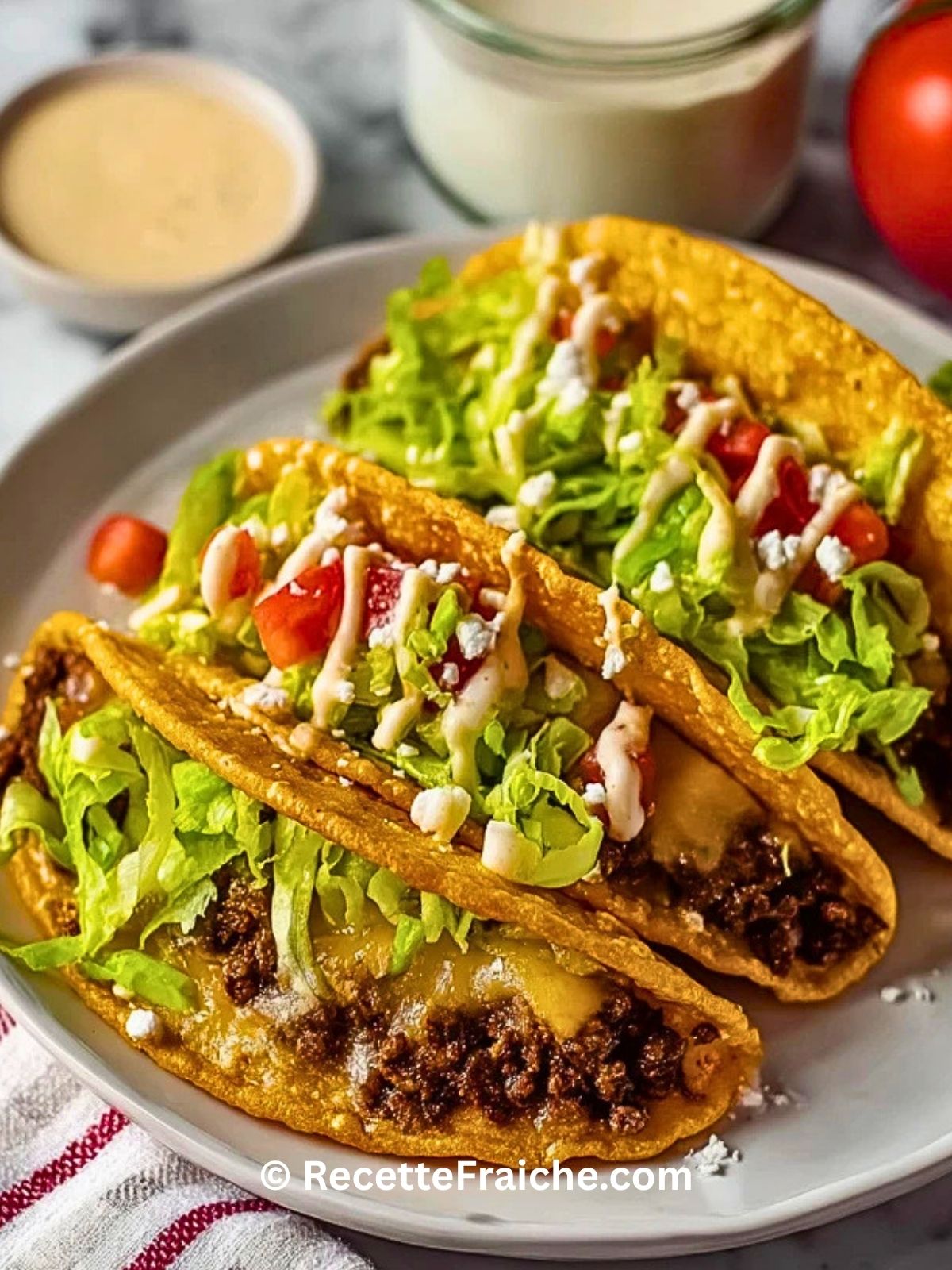 J’aime particulièrement cette recette parce qu’elle mélange plusieurs textures dans une seule bouchée : une viande savoureuse, une tortilla dorée, une laitue croquante, des tomates fraîches et une sauce crémeuse qui lie le tout. C’est généreux, rapide à faire et assez convivial pour un repas en famille ou entre amis.