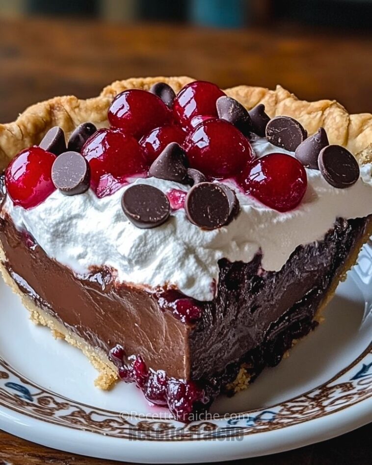 Je ne résiste jamais à une bonne tarte à la crème au chocolat, surtout quand elle est sublimée par des cerises juteuses et une touche de chantilly. Cette recette combine une base croustillante, une ganache fondante et un équilibre parfait entre douceur et acidité. L’association du chocolat et des cerises rappelle un dessert classique, mais avec une texture encore plus onctueuse et une présentation irrésistible.