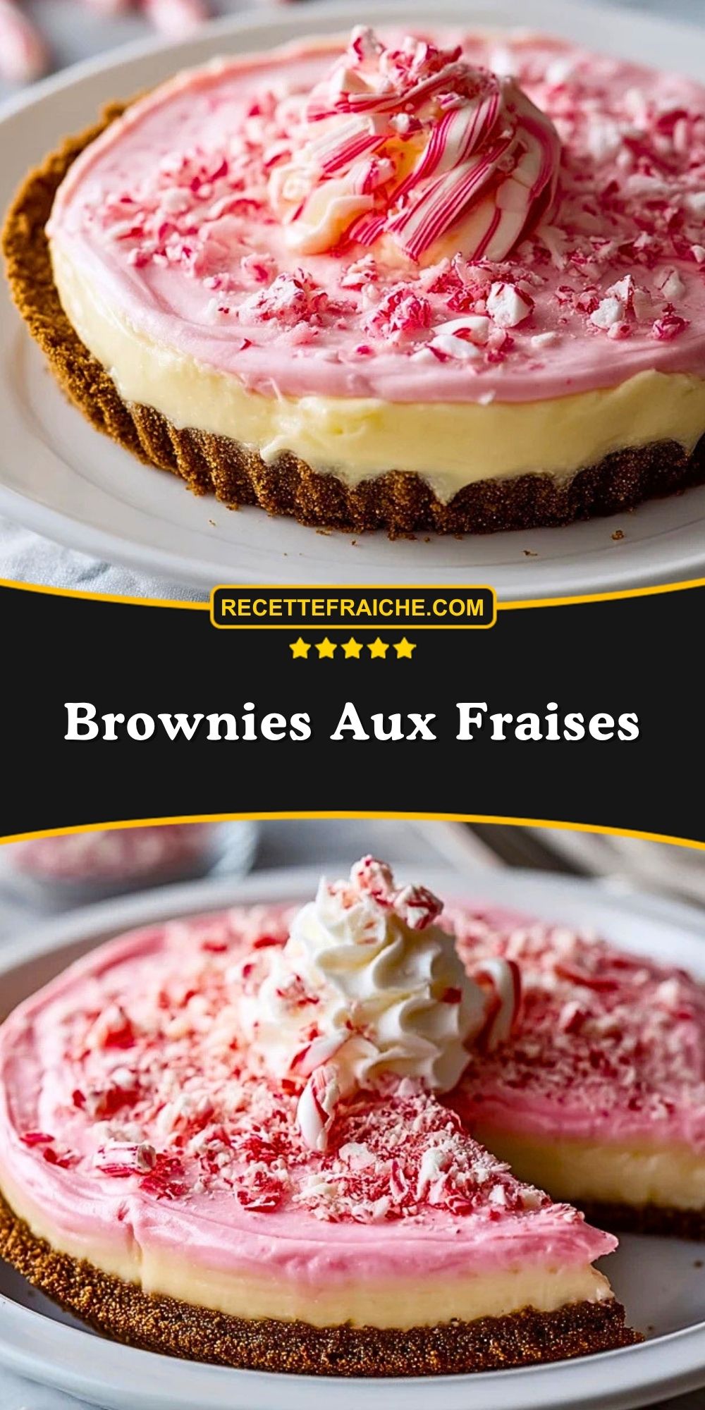 Absolument. Vous pouvez ajouter quelques copeaux de chocolat blanc, une touche de colorant rose plus prononcée, ou décorer la surface avec des mini-cannes de sucre. J’aime aussi déposer les bonbons concassés au centre pour créer un joli effet de relief au moment du service.