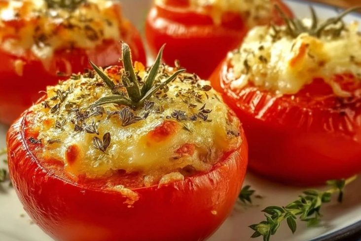 Des tomates farcies à la fois fondantes et croustillantes, garnies d’un mélange savoureux au fromage gratiné. Une recette simple et végétarienne, parfaite en plat principal ou en accompagnement léger.