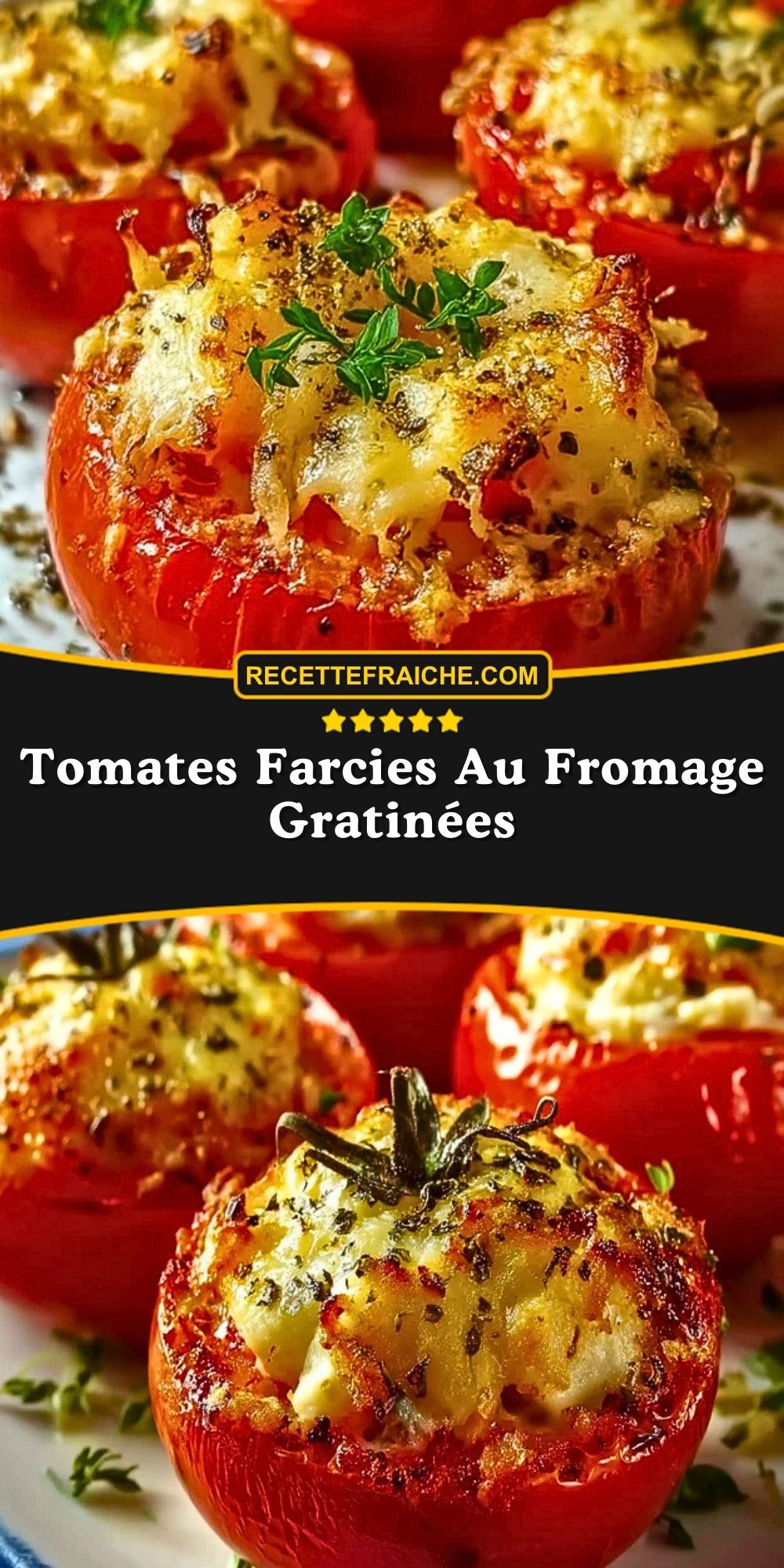 Ces tomates farcies au fromage gratinées sont une façon simple et délicieuse de profiter des tomates de saison. À la fois fondantes, croustillantes et pleines de goût, elles ne demandent qu’à être dévorées !