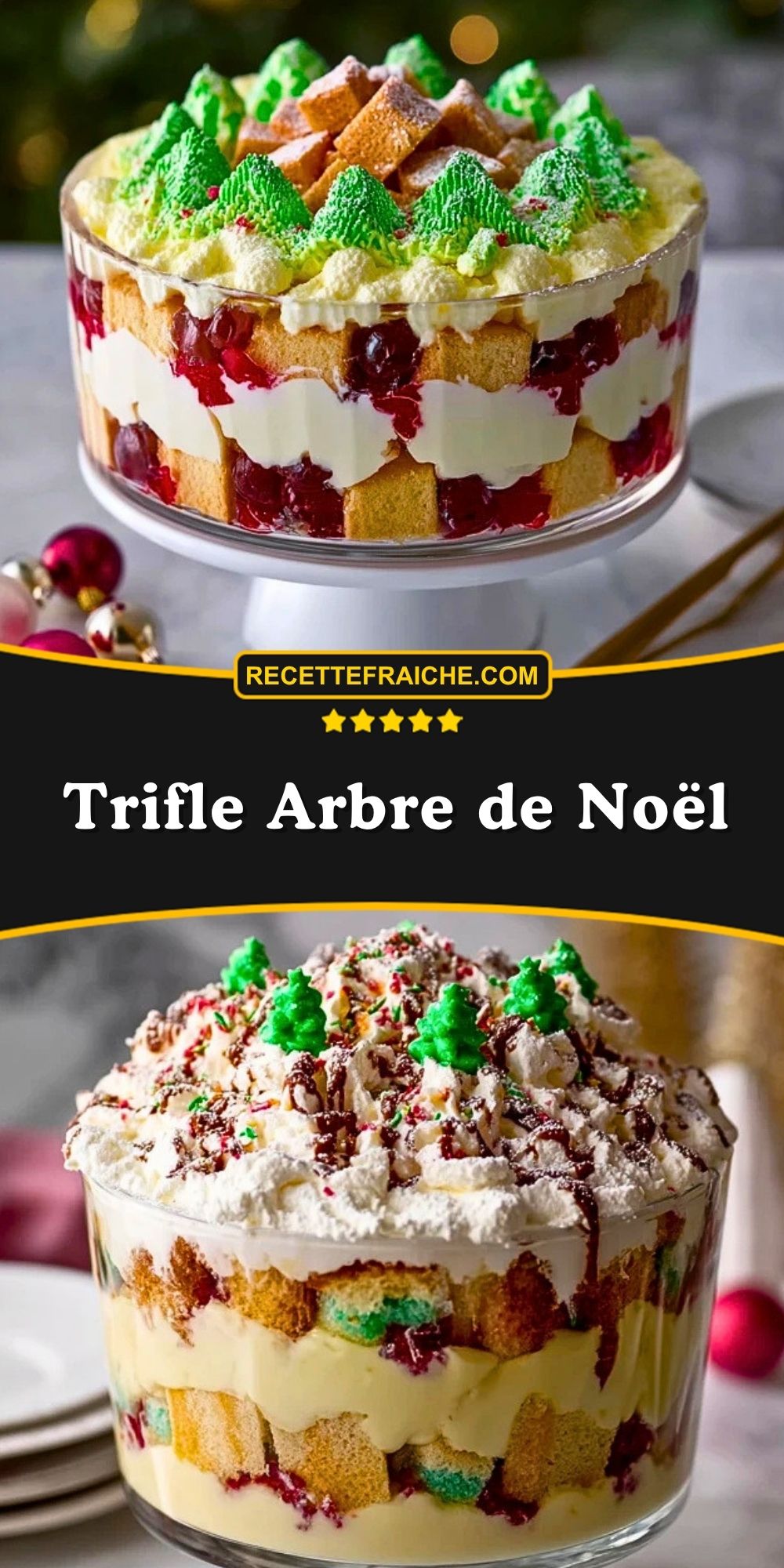 Keywords: trifle arbre de Noël, dessert de Noël, trifle festif, génoise, crème vanillée, chantilly, fruits rouges, dessert facile